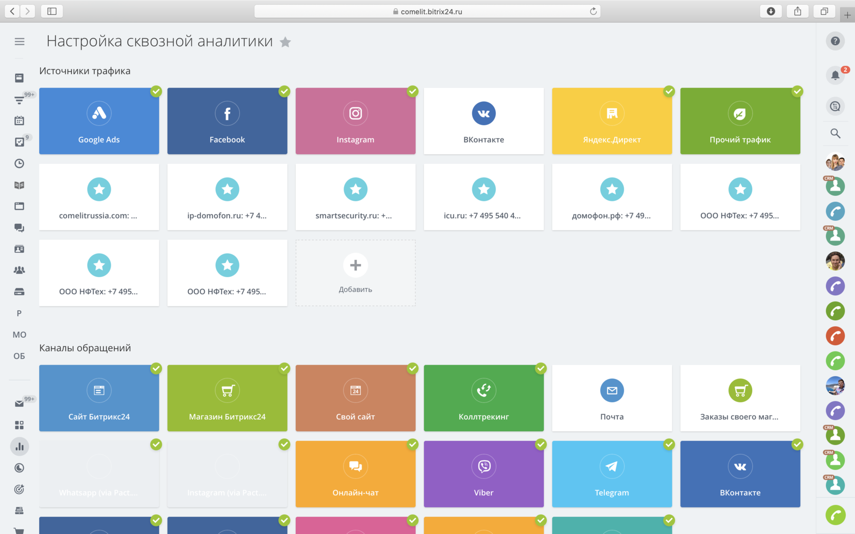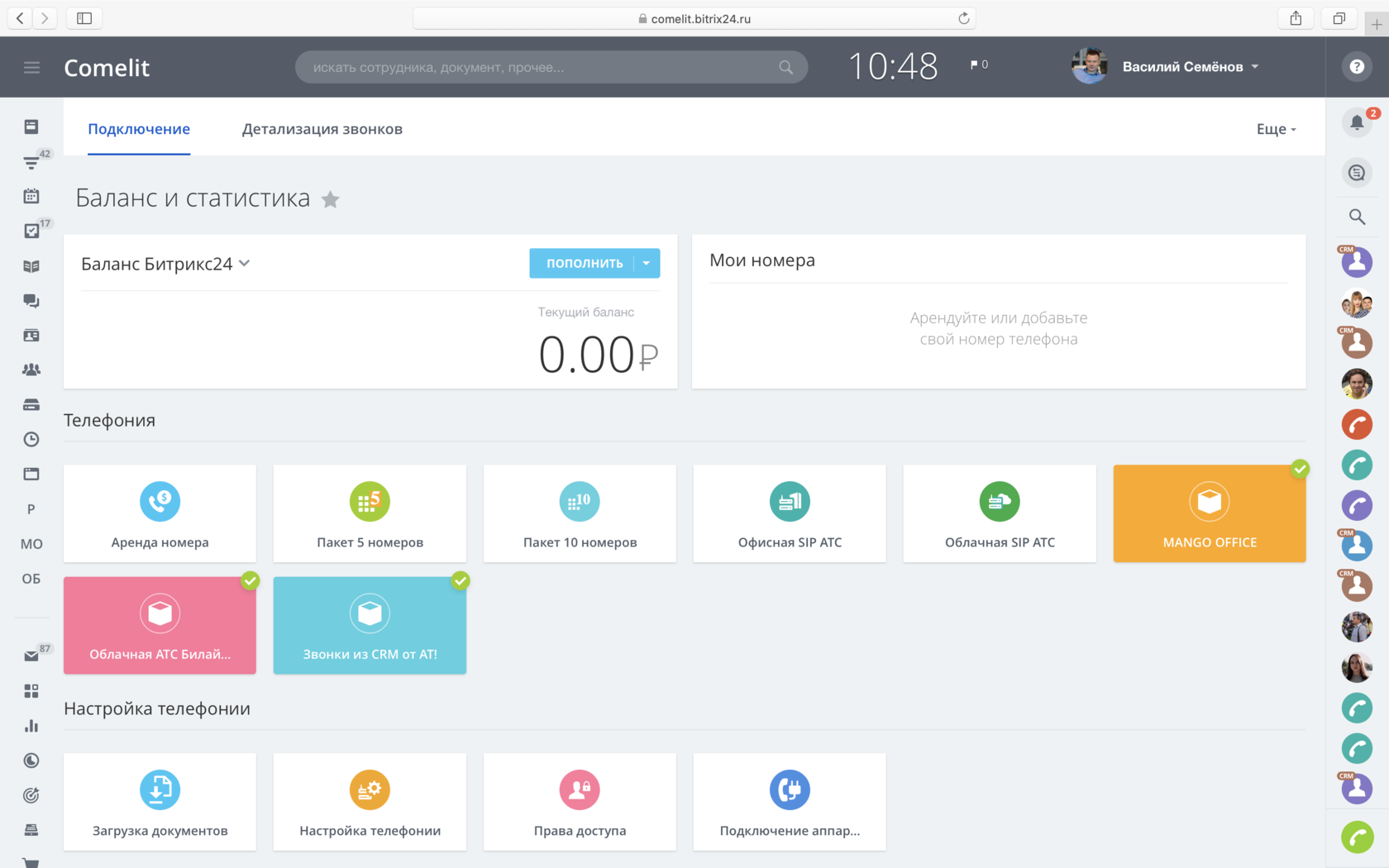 К нашему порталу подключена IP-телефония MANGO-OFFICE и INTINFORM, GSM Beeline и сервис perezvoni.com. Все звонки распределяютя по сотрудникам согласно заданному алгоритму. Например, на этапе продажи, клиент всегда попадает на своего менеджера, а когда оплата произведена, на своего курьера или монтажника, набирая при этом один и тот же телефонный номер.